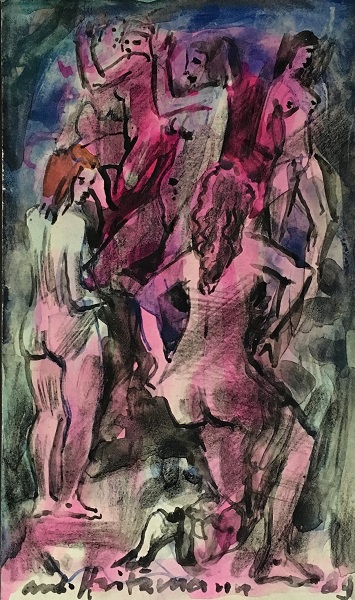 Les baigneuses (09) - 1989 Aquarelle 14 x 8,5 cm non encadré