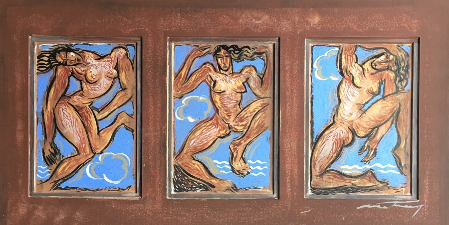 "Triptyque" - non daté Huile sur carton 24 x 45 cm non encadré