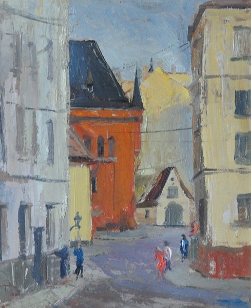 "Riga" - non daté Huile sur carton fort 50 x 40 cm encadré