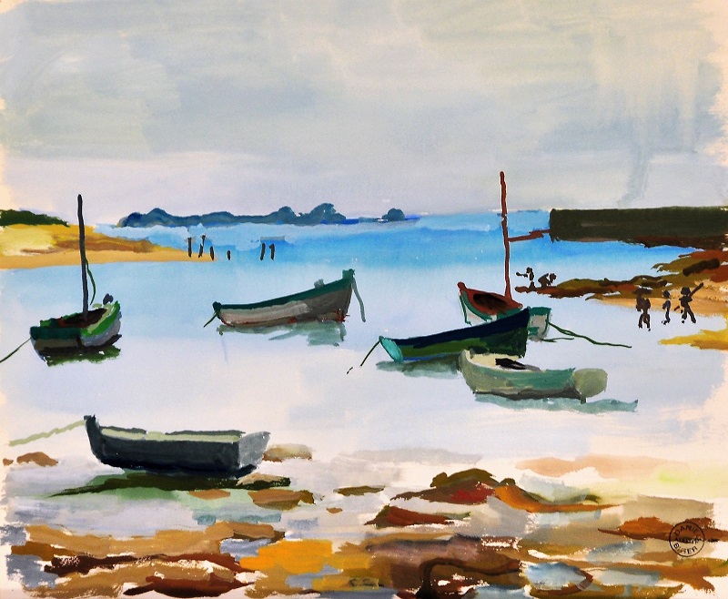 Aquarelle 34 x 41 cm Lesconil 1971 non encadré