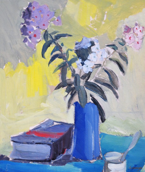 "Vase bleu" - non daté Huile sur bois 62 x 53 cm non encadré