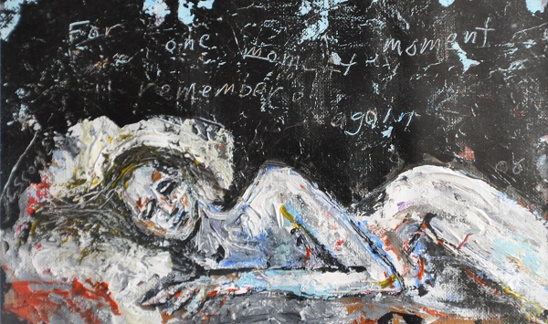Huile sur toile 12 x 26 cm "Without dress" 2006 encadré