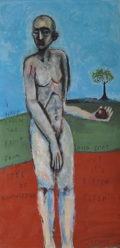 Huile sur papier fort 184 x 92 cm "Tree of knowledge" - 2010 non encadré