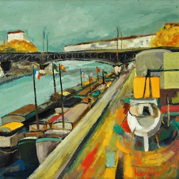 René HERVIER (1916-1992). René Hervier est un peintre régionaliste lyonnais. Son œuvre est principalement figurative, tantôt néo-impressionniste, tantôt cubiste. Il est le peintre des ambiances. Son œuvre est simple, facile d’accès, peu dérangeante. Il peint des espaces qu’il édulcore, et les personnages sont rarement présent sur ses scènes. Il excelle dans les déclinaisons de tons et l’expressionnisme qui s’en dégage est apaisant. Cotation ARTPRICE.
